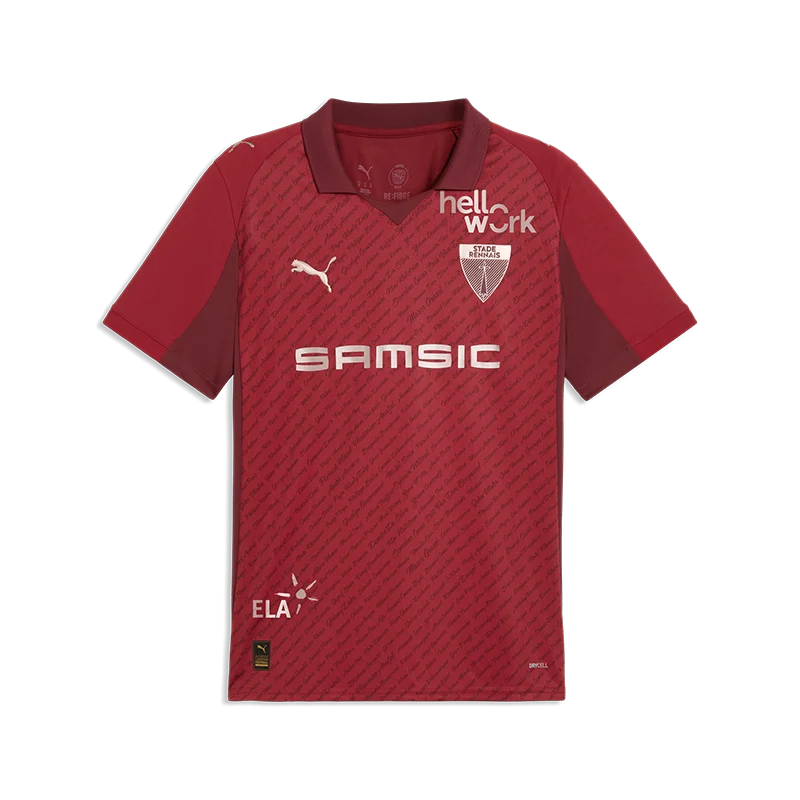 Maillot extérieur saison 2025/2026 - - Orné d'un motif hermines embossé au cœur du tissu, le maillot extérieur incarne l’héritage, les racines et la fierté de toute une région. - - Il rend hommage à cette double appartenance que les Rennais revendiquent fièrement : supporters du SRFC et enfants de la Bretagne. - - Technologie dry-CELL : régulation...